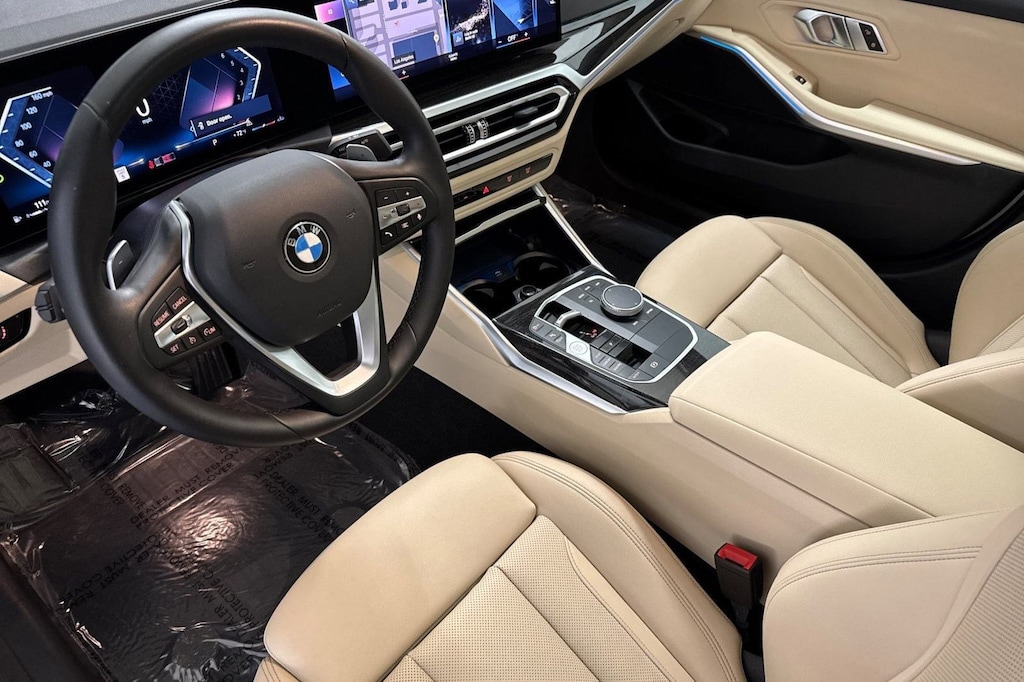 This 2023 BMW 3 Series 330i is a One Owner vehicle, exterior, and interior. Key features include REMOTE ENGINE START, PARK DISTANCE CONTROL, HEATED FRONT SEATS, CANBERRA BEIGE PERFORATED SENSATEC UPHOLSTERY, HIGH GLOSS FINE WOOD ASH GREY-BROWN TRIM, DRIVING ASSISTANCE PACKAGE, Sun/Moonroof, Immobilizer, and much more!