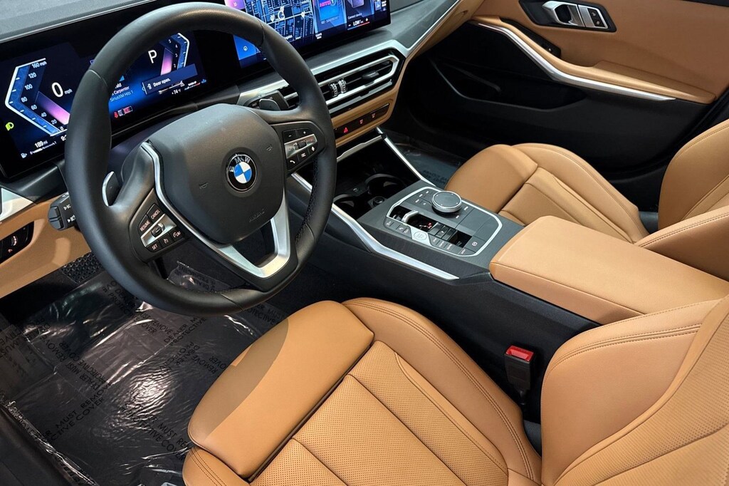 This 2023 BMW 3 Series 330i is a One Owner vehicle, exterior, and interior. Key features include OPEN PORE FINE WOOD OAK GRAIN TRIM, PARK DISTANCE CONTROL, HEATED FRONT SEATS, COGNAC PERFORATED SENSATEC UPHOLSTERY, WIRELESS DEVICE CHARGING, CONVENIENCE PACKAGE, DRIVING ASSISTANCE PACKAGE, Sun/Moonroof, Immobilizer, Back-Up Camera and much more!