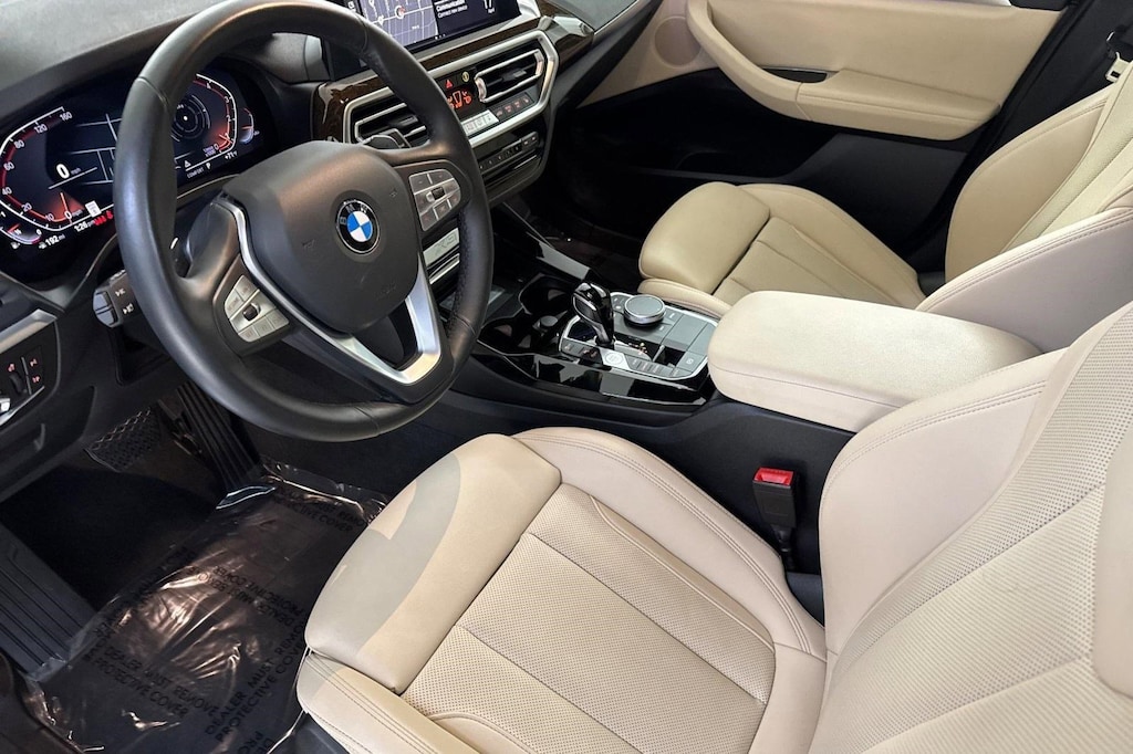 This 2023 BMW X3 sDrive30i is a One Owner vehicle with a Clean Carfax, exterior, and interior. Key features include PANORAMIC MOONROOF, SKYSCRAPER GRAY METALLIC, CANBERRA BEIGE PERFORATED SENSATEC UPHOLSTERY, HEATED FRONT SEATS, CONVENIENCE PACKAGE, Turbocharged, Headlights-Auto-Leveling, Woodgrain Interior Trim, Bluetooth Connection, Navigation System, Rear Parking Aid, Blind Spot Monitor, Cross-Traffic Alert, Lane Departure Warning, Front Collision Mitigation, and much more!