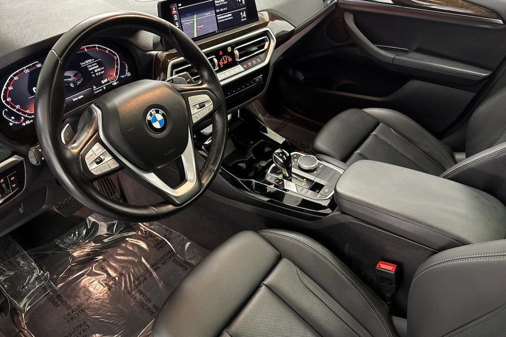 This 2023 BMW X3 sDrive30i is a One Owner vehicle with a Clean Carfax, exterior, and interior. Key features include BLACK PERFORATED SENSATEC UPHOLSTERY, HEATED FRONT SEATS, PANORAMIC MOONROOF, CONVENIENCE PACKAGE, Woodgrain Interior Trim, Rear Parking Aid, Blind Spot Monitor, Cross-Traffic Alert, Lane Departure Warning, and much more!