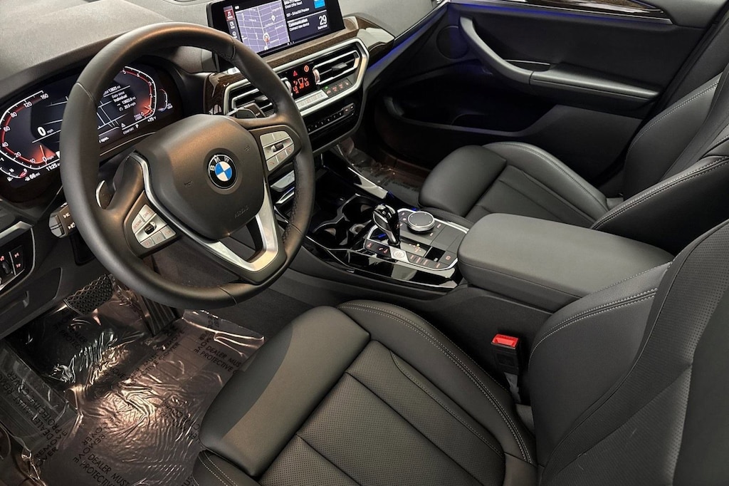 This 2023 BMW X3 sDrive30i is a One Owner vehicle with a Clean Carfax, exterior, and interior. Key features include PANORAMIC MOONROOF, REMOTE ENGINE START, BLACK PERFORATED SENSATEC UPHOLSTERY, HEATED FRONT SEATS, CONVENIENCE PACKAGE, Panoramic Moonroof, Woodgrain Interior Trim, Navigation System, Rear Parking Aid, Blind Spot Monitor, Cross-Traffic Alert, and much more!