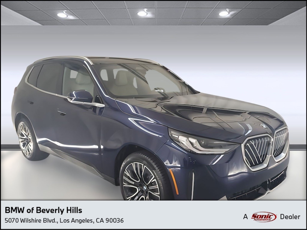 WHEELS: 20" X 9.0" FR & 20" X 10.5" RR BICOLOR -inc: Style 906M, Midnight grey, Tires: 255/45R20 Fr & 285/40R20 Rr AS, Staggered, TANZANITE BLUE II METALLIC, REAR CLIMATE CONTROL CONSOLE, PREMIUM PACKAGE -inc: Remote Engine Start, BMW Curved Display w/HUD, Heated Steering Wheel, Sky Lounge Panoramic Roof, Interior Camera, ACC Stop & Go + Active Driving Assistant, Allows for hands-on assisted driving mode up 110MPH on all streets and speed limit assistant, Premium Content 1, Travel & Comfort System, Parking Assistant Plus, a camera and ultrasound-based assistance system consisting of Surround View system and remote 3D view, PARKING ASSISTANCE PACKAGE -inc: Parking Assistant Professional, a camera and ultrasound-based assistance system consisting of Surround View system and remote 3D view, Remote Control Parking and maneuver and reversing assistant professional, MOBILITY KIT, INDIVIDUAL MAGNOLIA FINE PRINT WOOD TRIM, HEATED STEERING WHEEL, CALM BEIGE, VEGANZA PERFORATED & QUILTED UPHOLSTERY, BMW ICONIC GLOW KIDNEY GRILLE. This BMW X3 has a dependable Intercooled Turbo Gas/Electric I-4 2.0 L/122 engine powering this Automatic transmission.