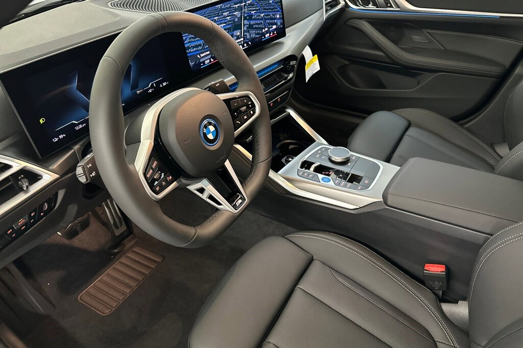 WHEELS: 19" X 8.5" FR & 19" X 9.0" RR M AERO (3GY) -inc: Bicolor, Style 996M, Tires: 245/40R19 Fr & 255/40R19 Rr All-Season, Staggered, SHADOWLINE PACKAGE -inc: M Sport Brakes w/Blue Calipers, M Sport Package Pro, Full LED Lights w/Laserlight Taillights, Extended Shadowline Trim, Rear Spoiler, M Shadowline Lights, PARKING ASSISTANCE PACKAGE -inc: Active Park Distance Control, Parking View w/3D View (Surround View), Rear View Camera, Parking Assistant Plus, M SPORT PACKAGE -inc: M Sport Brakes w/Blue Calipers, Shadowline Exterior Trim, Adaptive M Suspension, Wheels: 19" x 8.5" Fr & 19" x 9.0" Rr M Aero, Bicolor, Style 996M, Tires: 245/40R19 Fr & 255/40R19 Rr Summer, Staggered, Black Mirror Caps, Aluminum Rhombicle Anthracite Trim, M Steering Wheel, M Sport Package (337), Variable Sport Steering, Without Lines Designation Outside, Aerodynamic Kit, M SPORT BRAKES W/RED CALIPERS, M FINE BRUSHED ALUMINUM INTERIOR TRIM, EXTENDED SHADOWLINE TRIM, DRIVE RECORDER, BLACK, PERFORATED SENSATEC UPHOLSTERY, BLACK SAPPHIRE METALLIC. This BMW i4 has a dependable Electric engine powering this Automatic transmission.