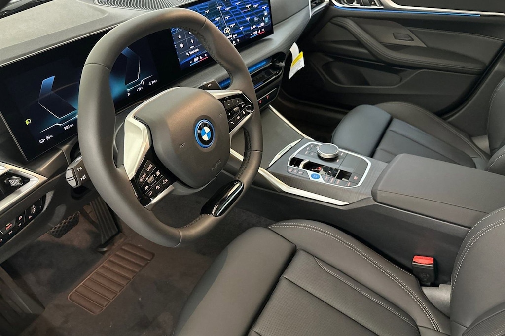WHEELS: 19" X 8.5" FR & 19" X 9.0" RR BICOLOR -inc: Gunmetal grey, Style 855, Tires: 245/40R19 Fr & 255/40R19 Rr All-Season, Staggered, SKYSCRAPER GREY METALLIC, PARKING ASSISTANCE PACKAGE -inc: Active Park Distance Control, Parking View w/3D View (Surround View), Rear View Camera, Parking Assistant Plus, HARMAN/KARDON SURROUND SOUND SYSTEM, DRIVING ASSISTANCE PACKAGE -inc: Active Cruise Control, distance control to cruise control system w/automatic regulation of speed and distance in stop-and-go traffic and in congestion, down to a complete standstill, Automatic pullaway after short stops (< 3s), BLACK, PERFORATED SENSATEC UPHOLSTERY, ASH GREY BLUE OPEN-PORED FINE WOOD TRIM, Widescreen Display, Wheels: 18" x 7.5" Aero Gunmetal Grey -inc: Style 854, Voice Activated Dual Zone Front Automatic Air Conditioning. This BMW i4 has a dependable Electric engine powering this Automatic transmission.
