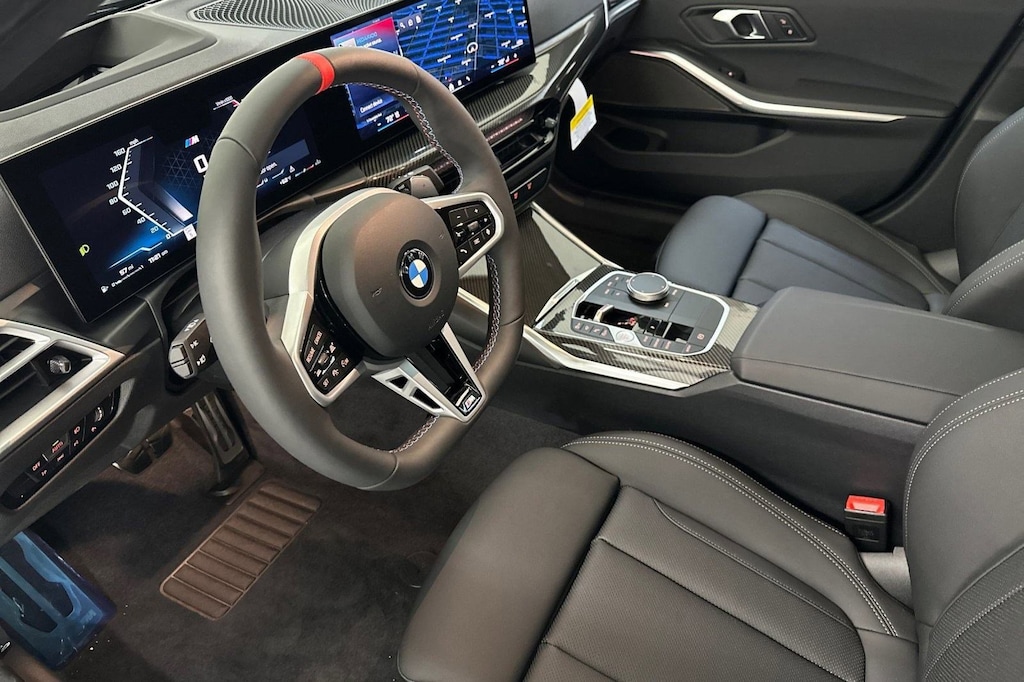 WHEELS: 19" X 8" FR & 19" X 8.5" RR M DUAL-SPOKE -inc: Style 995M, Jet black, Increased Top Speed Limiter, Tires: 225/40R19 Front & 255/35R19 Rear Summer, SHADOWLINE PACKAGE -inc: M Sport Brakes w/Red Calipers, M Sport Package Pro, Full LED Headlights w/Cornering Lights, Extended Shadowline Trim, M Shadowline Lights, PREMIUM PACKAGE -inc: BMW Curved Display w/HUD, harman/kardon Surround Sound System, PARKING ASSISTANCE PACKAGE -inc: Drive Recorder, Parking View w/3D Surround View, Active Park Distance Control w/Side Protection, Parking Assistant Plus, M SPORT BRAKES W/RED CALIPERS, HARMAN/KARDON SURROUND SOUND SYSTEM, EXTENDED SHADOWLINE TRIM, DRIVING ASSISTANCE PACKAGE -inc: Distance Control (ACC), distance control to cruise control system w/automatic regulation of speed and distance in stop-and-go traffic and in congestion, down to complete a standstill, Automatic pull-away after short stops (less than 3 seconds), CARBON FIBER TRIM, BLACK, PERFORATED SENSATEC UPHOLSTERY. This BMW 3 Series has a dependable Intercooled Turbo Gas/Electric I-6 3.0 L/183 engine powering this Automatic transmission.