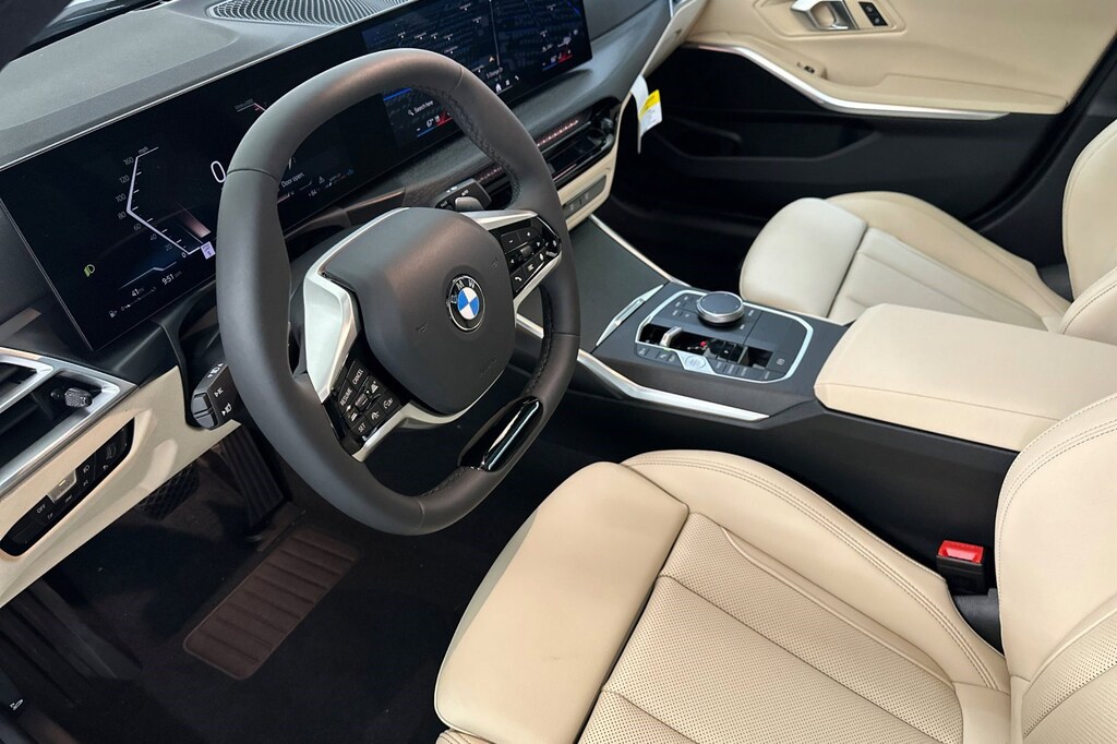 WHEELS: 18" X 7.5" DUAL-SPOKE SILVER -inc: Style 1039 (STD), PARK DISTANCE CONTROL, DRIVING ASSISTANT, DRIVING ASSISTANCE PACKAGE -inc: Distance Control (ACC), Adds distance control to cruise control system w/automatic regulation of speed and distance in stop-and-go traffic and in congestion, down to complete a standstill, Automatic pullaway after short stops (<3s), CONVENIENCE PACKAGE -inc: Remote Engine Start, Heated Steering Wheel, Driving Assistant, Power Tailgate, Active Blind Spot Detection, Park Distance Control, CANBERRA BEIGE, PERFORATED SENSATEC UPHOLSTERY, ASH GREY BLUE OPEN-PORED FINE WOOD TRIM, ARCTIC RACE BLUE METALLIC, Wireless Device Charging, Widescreen Display. This BMW 3 Series has a strong Intercooled Turbo Gas/Electric I-4 2.0 L/122 engine powering this Automatic transmission.