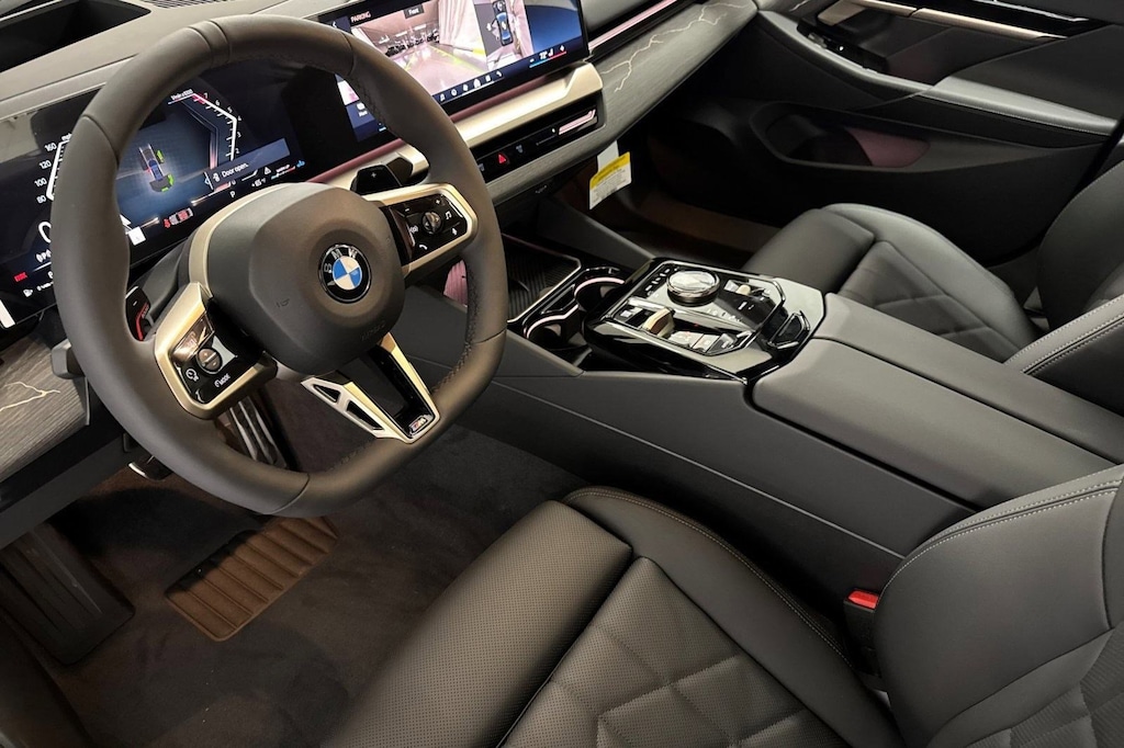 WHEELS: 21" X 8.5" FR & 21" X 9.5" RR INDIVIDUAL -inc: Style 954i, Aero bicolor, Tires: 255/35R21 Front & 285/30R21 Rear Summer, Staggered, Increased Top Speed Limiter, REMOTE ENGINE START, PREMIUM PACKAGE -inc: Remote Engine Start, BMW Curved Display w/HUD, Parking View w/3D View (Surround View), Heated Steering Wheel, Interior Camera, Premium Content 1, Parking Assistant Plus, M SPORT PROFESSIONAL PACKAGE -inc: launch control and expert mode, M Sport Package Pro, Extended Shadowline Trim, Rear Spoiler, M Sport Pro Contents, M Sport Brakes w/Red Calipers, M Shadowline Lights, BMW Iconic Glow Kidney Grille, M SPORT PACKAGE -inc: Shadowline Exterior Trim, M Steering Wheel, M Sport Exterior Elements, M Sport Content, M Sport Pkg, M Sport Brakes w/Blue Calipers, M Sport Interior Elements, M Sport Suspension, Wheels: 19" x 8.5" M Dual-Spoke Bicolor Black, Style 935M, HEATED STEERING WHEEL, BMW INDIVIDUAL FINE WOOD OPEN PORE TRIM -inc: silver bronze inlay and accent, BMW ICONIC GLOW KIDNEY GRILLE, BLACK, PERFORATED & QUILTED VEGANZA UPHOLSTERY, BLACK SAPPHIRE METALLIC. This BMW 5 Series has a strong Intercooled Turbo Gas/Electric I-4 2.0 L/122 engine powering this Automatic transmission.