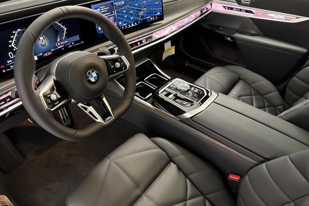WHEELS: 21" M STAR-SPOKE BICOLOR STYLE 908M -inc: 21" x 9.0" front and 21" x 10.5" rear, Tires: 255/40R21 Fr & 285/35R21 Rr Staggered Summer, Increased Top Speed Limiter, PREMIUM PACKAGE -inc: Driving Assistant Plus, Parking Assistant Professional, drive recorder, Parking View w/3D View (Surround View), Illuminated Kidney Grille, Parking Assistant Delete, M SPORT PROFESSIONAL PACKAGE -inc: M Sport Brakes w/Black Calipers, M Sport Package Pro, Extended Shadowline Trim, Rear Spoiler, M Sport Pro Contents, FINELINE OPEN PORE WOOD TRIM W/PIANO BLACK ACCENTS, BLACK, VEGANZA UPHOLSTERY, ALPINE WHITE, Wireless Phone Connectivity, Wheels: 20" M Aero Bicolor Style 907M -inc: 20" x 9.0" front and 20" x 10.5" rear, Veganza Upholstery, Valet Function. This BMW 7 Series has a strong Intercooled Turbo Gas/Electric I-6 3.0 L/183 engine powering this Automatic transmission.
