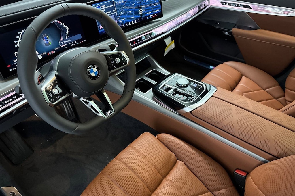 WHEELS: 20" M AERO BICOLOR STYLE 907M -inc: 20" x 9.0" front and 20" x 10.5" rear (STD), TARTUFO, EXTENDED MERINO LEATHER UPHOLSTERY, TANZANITE BLUE II METALLIC, SILVER GREY ASH GRAIN OPEN PORE WOOD TRIM, PREMIUM PACKAGE -inc: Driving Assistant Plus, Parking Assistant Professional, drive recorder, Parking View w/3D View (Surround View), Illuminated Kidney Grille, Parking Assistant Delete, M SPORT PROFESSIONAL PACKAGE -inc: M Sport Brakes w/Black Calipers, M Sport Package Pro, Extended Shadowline Trim, Rear Spoiler, M Sport Pro Contents, FRONT VENTILATED SEATS, FRONT MASSAGING SEATS, Wireless Phone Connectivity, Wheels: 20" M Aero Bicolor Style 907M -inc: 20" x 9.0" front and 20" x 10.5" rear. This BMW 7 Series has a strong Intercooled Turbo Gas/Electric I-6 3.0 L/183 engine powering this Automatic transmission.