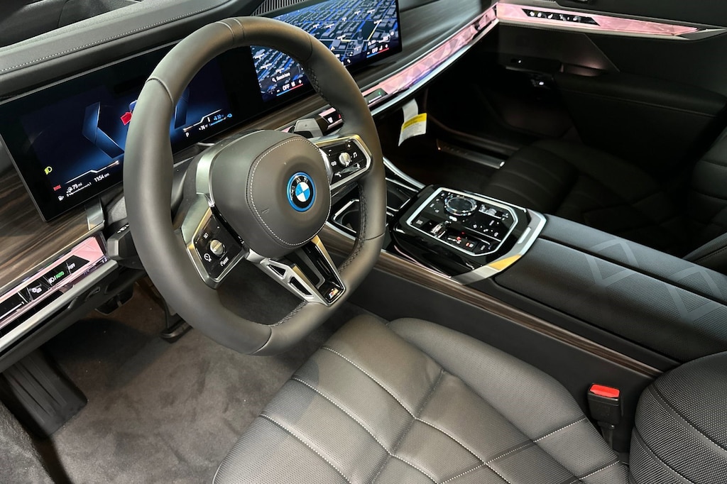 WHEELS: 21" INDIVIDUAL MULTI-SPOKE BICOLOR STYLE 1055 -inc: Bi color, 21" x 9.0" front and 21" x 10.5" rear, Tires: 255/40R21 Fr & 285/35R21 Rr Staggered Summer, Non run-flat, Increased Top Speed Limiter, M SPORT PROFESSIONAL PACKAGE -inc: M Sport Brakes w/Black Calipers, M Sport Package Pro, Extended Shadowline Trim, Rear Spoiler, M Sport Pro Contents, FRONT VENTILATED SEATS, FRONT MASSAGING SEATS, FINELINE OPEN PORE WOOD TRIM W/PIANO BLACK ACCENTS, BLACK, EXTENDED MERINO LEATHER UPHOLSTERY, BLACK SAPPHIRE METALLIC, Wireless Phone Connectivity, Wheels: 20" M Aero Bicolor Style 907M -inc: 20" x 9.0" front and 20" x 10.5" rear, Valet Function. This BMW 7 Series has a powerful Intercooled Turbo Gas/Electric I-6 3.0 L/183 engine powering this Automatic transmission.