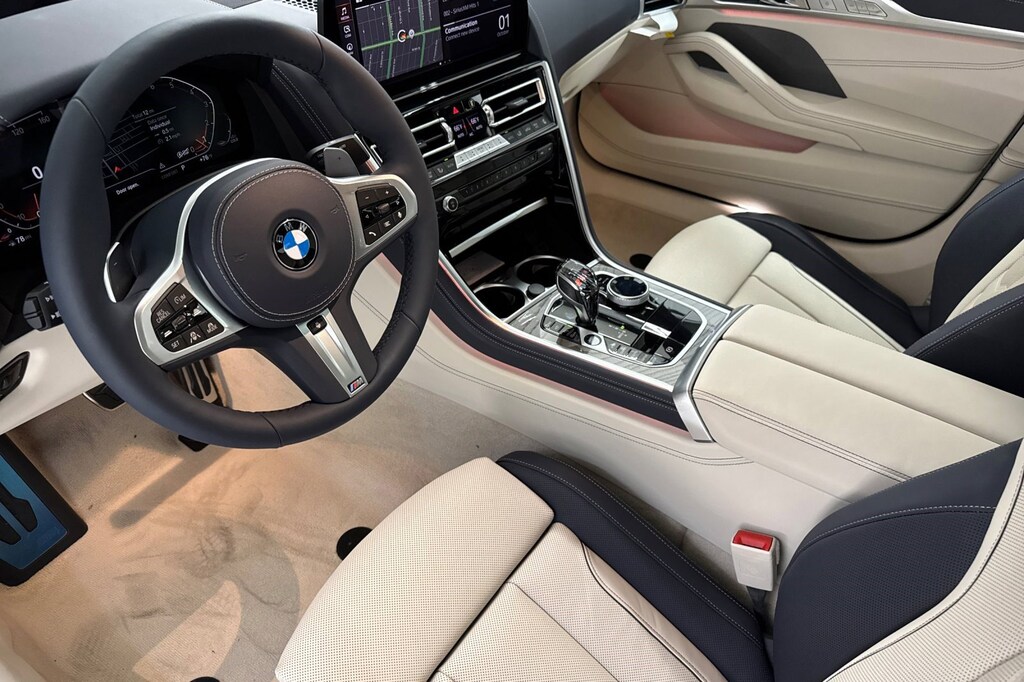 M SPORT PROFESSIONAL PACKAGE -inc: M Sport Brakes w/Black Calipers, M Sport Package Pro, Extended Shadowline Trim, M Shadowline Lights, GLASS CONTROLS, DRIVING ASSISTANCE PROFESSIONAL PACKAGE -inc: Lane Change Assistant, Driving Assistant Professional, Partial Automated Driving, Traffic Jam Assistant, Adds hands-free driving up to 40 mph on selected highways, DRIVING ASSISTANCE PACKAGE -inc: Parking View w/3D View (Surround View), Rear View Camera, Driving Assistant, Active Blind Spot Detection, Active Park Distance Control w/Side Protection, Parking Assistant Plus, COMFORT SEATING PACKAGE -inc: Front & Rear Heated Seats, Front Ventilated Seats, ASH GRAIN GREY-METALLIC WOOD TRIM, ALCANTARA HEADLINER IN UPHOLSTERY COLOR, WiFi Hotspot -inc: complimentary 3-month or 3GB trial, Wheels: 19" x 8" Fr & 19" x 9" Rr M Dual-Spoke -inc: (Style 727M), Bicolor grey, Valet Function. This BMW 8 Series has a strong Intercooled Turbo Premium Unleaded I-6 3.0 L/183 engine powering this Automatic transmission.