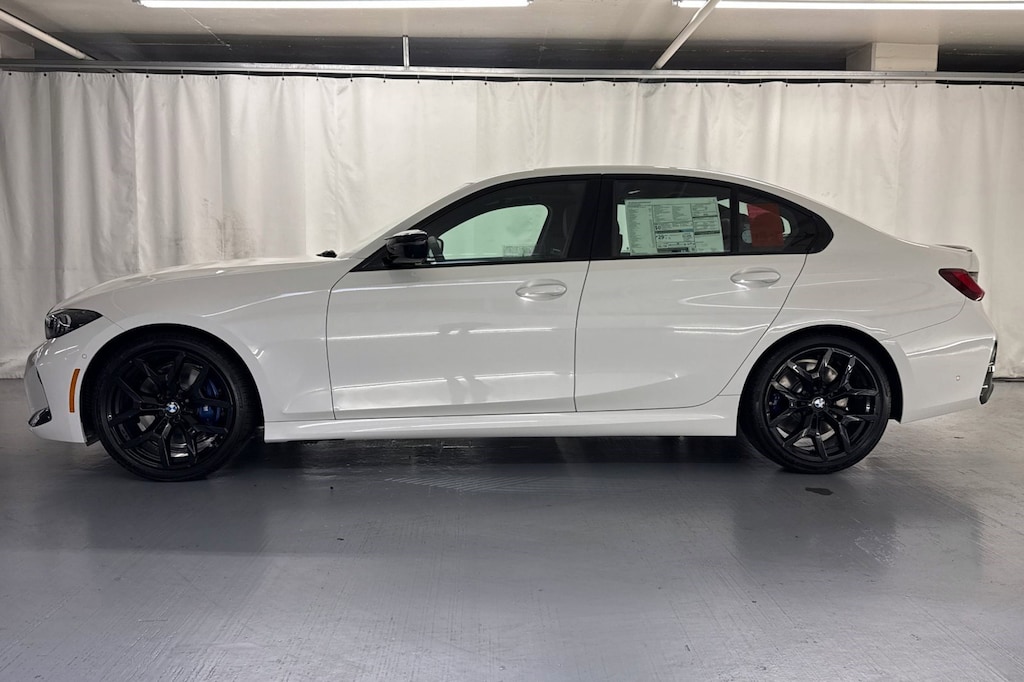 WHEELS: 19" X 8" M DUAL-SPOKE JET BLACK -inc: Style 995M, TACORA RED, PERFORATED SENSATEC UPHOLSTERY, SHADOWLINE PACKAGE -inc: M Sport Brakes w/Red Calipers, M Sport Package Pro, Full LED Headlights w/Cornering Lights, Extended Shadowline Trim, M Shadowline Lights, PREMIUM PACKAGE -inc: BMW Curved Display w/HUD, harman/kardon Surround Sound System, PARKING ASSISTANCE PACKAGE -inc: Drive Recorder, Parking View w/3D Surround View, Active Park Distance Control w/Side Protection, Parking Assistant Plus, M SPORT BRAKES W/BLUE CALIPERS, HARMAN/KARDON SURROUND SOUND SYSTEM, EXTENDED SHADOWLINE TRIM, CARBON FIBER TRIM, ALPINE WHITE. This BMW 3 Series has a strong Intercooled Turbo Gas/Electric I-6 3.0 L/183 engine powering this Automatic transmission.