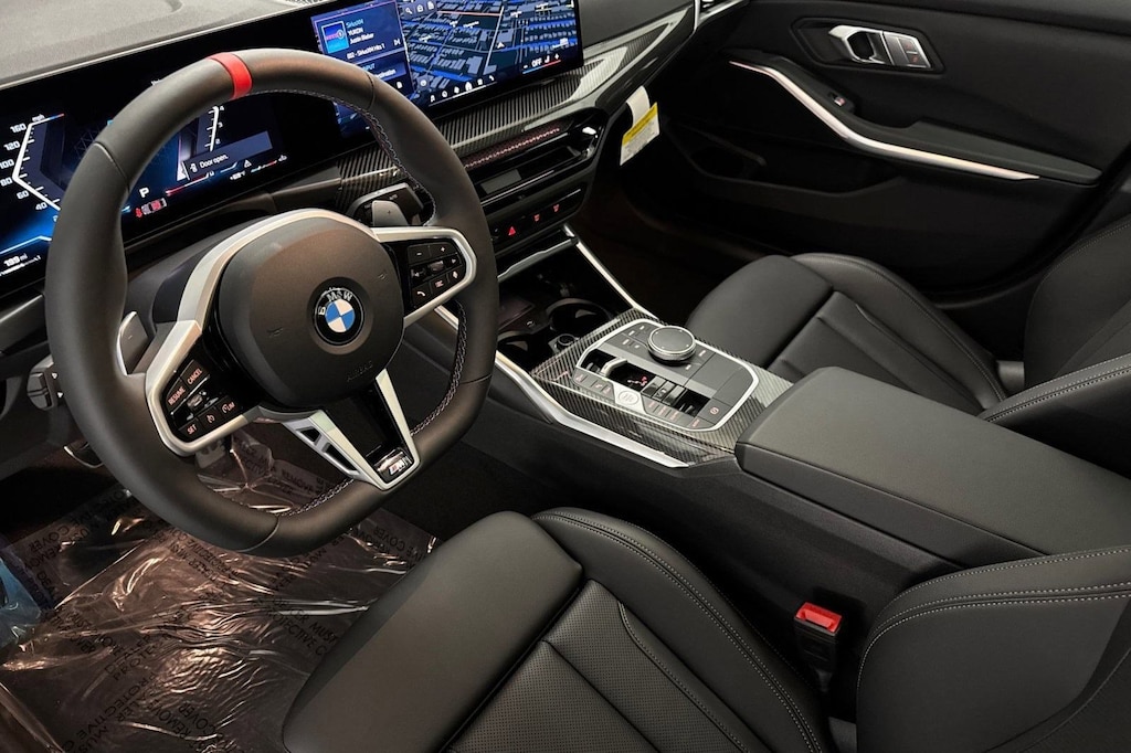 SHADOWLINE PACKAGE -inc: M Sport Brakes w/Red Calipers, M Sport Package Pro, Full LED Headlights w/Cornering Lights, Extended Shadowline Trim, M Shadowline Lights, M SPORT BRAKES W/RED CALIPERS, GALVANIC CONTROLS, EXTENDED SHADOWLINE TRIM, CARBON FIBER TRIM, BLACK, PERFORATED SENSATEC UPHOLSTERY, BLACK SAPPHIRE METALLIC, ADAPTIVE M SUSPENSION, Wireless Device Charging, Widescreen Display. This BMW 3 Series has a strong Intercooled Turbo Gas/Electric I-6 3.0 L/183 engine powering this Automatic transmission.