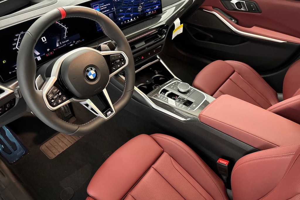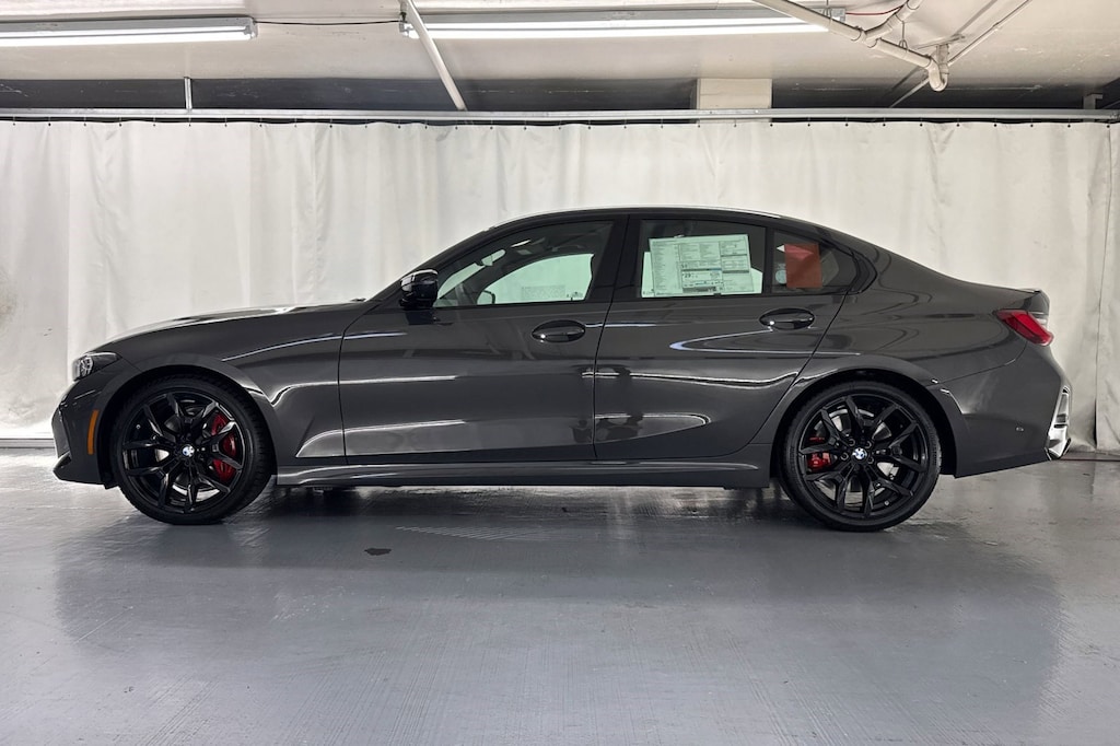 WHEELS: 19" X 8" FR & 19" X 8.5" RR M DUAL-SPOKE -inc: Style 995M, Jet black, Increased Top Speed Limiter, Tires: 225/40R19 Front & 255/35R19 Rear Summer, TACORA RED, PERFORATED SENSATEC UPHOLSTERY, SHADOWLINE PACKAGE -inc: M Sport Brakes w/Red Calipers, M Sport Package Pro, Full LED Headlights w/Cornering Lights, Extended Shadowline Trim, M Shadowline Lights, PREMIUM PACKAGE -inc: BMW Curved Display w/HUD, harman/kardon Surround Sound System, PARKING ASSISTANCE PACKAGE -inc: Drive Recorder, Parking View w/3D Surround View, Active Park Distance Control w/Side Protection, Parking Assistant Plus, M SPORT BRAKES W/RED CALIPERS, HARMAN/KARDON SURROUND SOUND SYSTEM, EXTENDED SHADOWLINE TRIM, DRIVING ASSISTANCE PROFESSIONAL PACKAGE -inc: Lane Change Assistant, Distance Control (ACC) w/Steering Assistant, Driving Assistant Professional, Partial Automated Driving, Hands-free driving up to 40 mph on selected highways, Traffic Jam Assistant, DRAVIT GREY METALLIC. This BMW 3 Series has a strong Intercooled Turbo Gas/Electric I-6 3.0 L/183 engine powering this Automatic transmission.