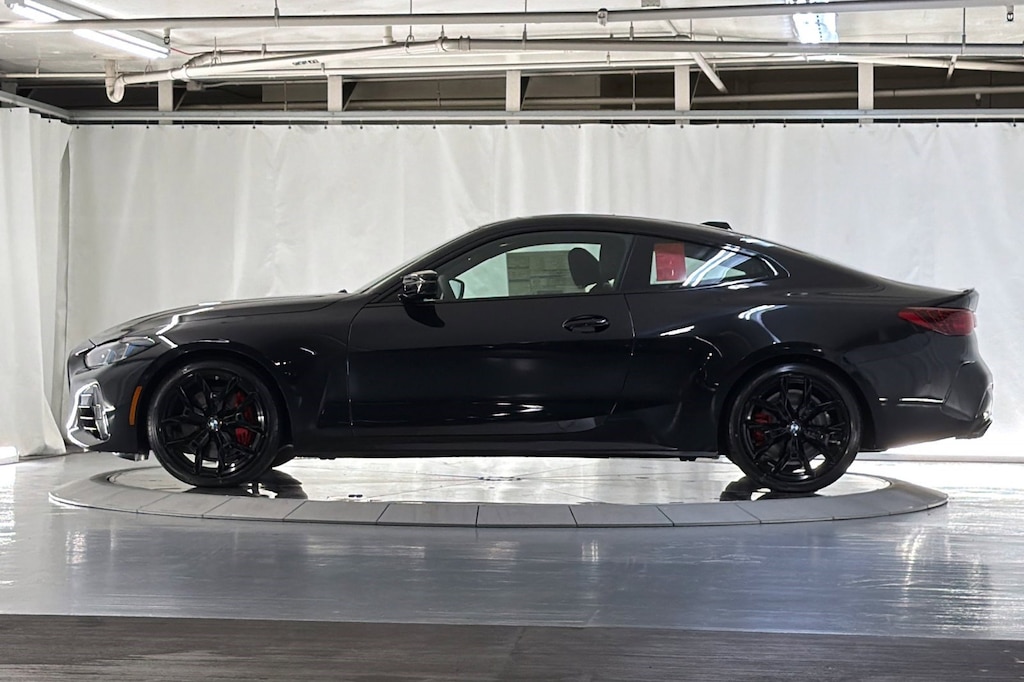 WHEELS: 19" X 8" M DUAL-SPOKE JET BLACK -inc: Style 995M, SHADOWLINE PACKAGE -inc: M Sport Brakes w/Red Calipers, M Sport Package Pro, M Shadowline Lights, PREMIUM PACKAGE -inc: Live Cockpit Pro w/Navigation, harman/kardon Surround Sound System, PARKING ASSISTANCE PACKAGE -inc: Parking View w/3D View (Surround View), Provides a 360-degree view around the vehicle in parking situations, Parking Assistant Plus, M FINE BRUSHED ALUMINUM INTERIOR TRIM, HARMAN/KARDON SURROUND SOUND SYSTEM, DRIVE RECORDER, BLACK, PERFORATED SENSATEC UPHOLSTERY, BLACK SAPPHIRE METALLIC, Wireless Device Charging. This BMW 4 Series has a dependable Intercooled Turbo Gas/Electric I-6 3.0 L/183 engine powering this Automatic transmission.