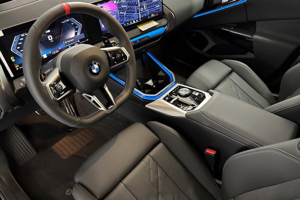 WHEELS: 21" X 9" FR & 21" X 10.5" RR M JET BLACK -inc: Style 1037M, Matte, Tires: 255/40R21 Fr & 285/35R21 Rr, Staggered performance, PREMIUM PACKAGE -inc: Distance Control (ACC) w/Steering Assistant, Live Cockpit Pro w/Navi, Parking View w/3D View (Surround View), harman/kardon Surround Sound System, Interior Camera, Driving Assistance Plus, Allows for hands-on assisted driving mode up 110MPH on all streets and speed limit assistant, Premium Content 1, Parking Assistant Plus, a camera and ultrasound-based assistance system consisting of Surround View system and remote 3D view, M SPORT PROFESSIONAL PACKAGE -inc: M Sport Package Pro, Full LED Headlights w/Cornering Light, Extended Shadowline Trim, M SPORT BRAKES W/RED CALIPERS, HARMAN/KARDON SURROUND SOUND SYSTEM, FULL LED HEADLIGHTS W/CORNERING LIGHT, DRIVING ASSISTANCE PROFESSIONAL PACKAGE -inc: Lane Change Assistant, Distance Control (ACC) w/Steering Assistant, Driving Assistant Professional, permanent hands-off on motorways up to 40MPH and hands-on assisted driving up to 130MPH on all streets, Traffic Jam Assistant, BLACK, VEGANZA PERFORATED & QUILTED UPHOLSTERY, BLACK SAPPHIRE METALLIC, Wireless Device Charging. This BMW X3 has a strong Intercooled Turbo Gas/Electric I-6 3.0 L/183 engine powering this Automatic transmission.