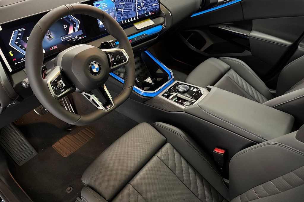WHEELS: 20" X 9" FR & 20" X 10.5" RR BI-COLOR -inc: Style 906M, Jet black, Tires: 255/45R20 Fr & 285/40R20 Rr AS, Staggered, PREMIUM PACKAGE -inc: Remote Engine Start, Distance Control (ACC) w/Steering Assistant, BMW Curved Display w/HUD, Parking View w/3D View (Surround View), Heated Steering Wheel, Panorama Moonroof, Interior Camera, Driving Assistance Plus, Allows for hands-on assisted driving mode up 110MPH on all streets and speed limit assistant, Premium Content 1, Travel & Comfort System, Parking Assistant Plus, a camera and ultrasound-based assistance system consisting of Surround View system and remote 3D view, M SPORT PROFESSIONAL PACKAGE -inc: M Sport Brakes w/Red Calipers, M Sport Package Pro, Extended Shadowline Trim, M Sport Pro Contents, BMW Iconic Glow Kidney Grille, M SPORT PACKAGE -inc: Shadowline Exterior Trim, M Steering Wheel, M Sport Exterior Elements, M Sport Content, M Sport Package (337), M Sport Interior Elements, Variable Sport Steering, M Fine Brushed Aluminum Interior Trim, M Sport Suspension, Wheels: 19" x 8.5" M Midnight Grey Bicolor, Style 1035M, M SPORT BRAKES W/RED CALIPERS, INDIVIDUAL MAGNOLIA FINE PRINT WOOD TRIM, DRIVING ASSISTANCE PROFESSIONAL PACKAGE -inc: Lane Change Assistant, Distance Control (ACC) w/Steering Assistant, Driving Assistant Professional, permanent hands-off on motorways up to 40MPH and hands-on assisted driving up to 130MPH on all streets, Traffic Jam Assistant, BMW ICONIC GLOW KIDNEY GRILLE, BLACK, M ALCANTARA/VEGANZA UPHOLSTERY, BLACK SAPPHIRE METALLIC. This BMW X3 has a powerful Intercooled Turbo Gas/Electric I-4 2.0 L/122 engine powering this Automatic transmission.