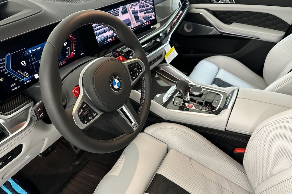 SILVERSTONE, FULL MERINO LEATHER SEAT UPHOLSTERY, MOBILITY KIT, M COMPOUND BRAKES W/BLACK CALIPERS, EXECUTIVE PACKAGE -inc: Heated & Cooled Cupholders, Front Ventilated Seats, Soft-Close Automatic Doors, Front Massaging Seats, Rear Manual Side Window Shades, Panoramic Sky Lounge LED Roof, Front & Rear Heated Seats, DRIVING ASSISTANCE PROFESSIONAL PACKAGE -inc: Lane Change Assistant, Distance Control (ACC) w/Steering Assistant, Driving Assistant Professional, Partial Automated Driving, hands-free driving up to 40 mph on selected highways, Traffic Jam Assistant, BOWERS & WILKINS DIAMOND SURROUND SOUND SYSTEM, Wireless Device Charging, Wheels: 21" x 10.5" Fr & 22" x 11.5" Rr Bicolor -inc: Style 809M, M star-spoke, Valet Function, Trunk/Hatch Auto-Latch. This BMW X5 M has a powerful Twin Turbo Gas/Electric V-8 4.4 L/268 engine powering this Automatic transmission.