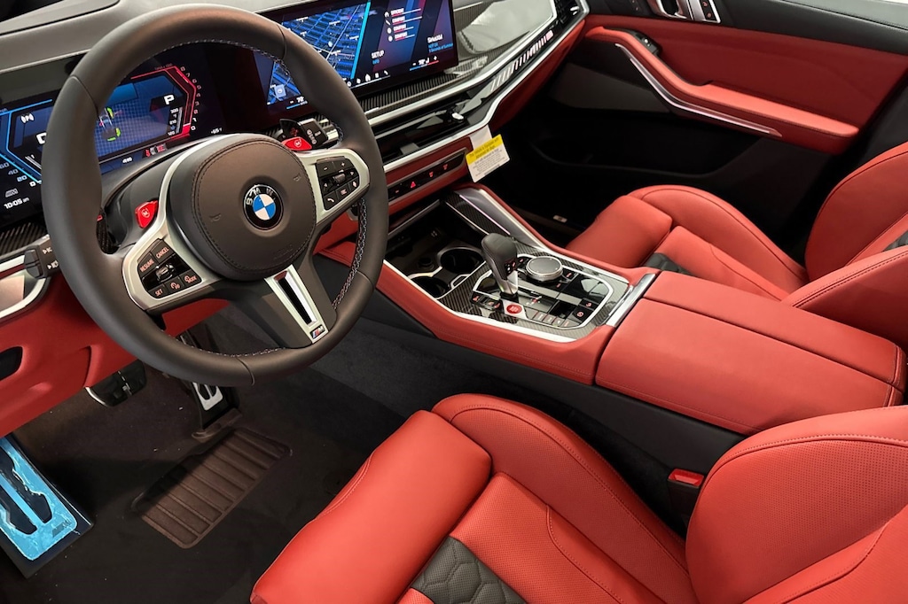WHEELS: 21" X 10.5" FR & 22" X 11.5" RR BLACK -inc: Style 818M, M star-spoke, SAKHIR ORANGE/BLACK, EXTENDED MERINO LEATHER SEAT UPHOLSTERY, M COMPOUND BRAKES W/RED CALIPERS, EXECUTIVE PACKAGE -inc: Heated & Cooled Cupholders, Front Ventilated Seats, Soft-Close Automatic Doors, Front Massaging Seats, Rear Manual Side Window Shades, Panoramic Sky Lounge LED Roof, Front & Rear Heated Seats, DRIVING ASSISTANCE PROFESSIONAL PACKAGE -inc: Lane Change Assistant, Distance Control (ACC) w/Steering Assistant, Driving Assistant Professional, Partial Automated Driving, hands-free driving up to 40 mph on selected highways, Traffic Jam Assistant, BLACK SAPPHIRE METALLIC, Wireless Device Charging, Wheels: 21" x 10.5" Fr & 22" x 11.5" Rr Bicolor -inc: Style 809M, M star-spoke, Valet Function, Trunk/Hatch Auto-Latch. This BMW X5 M has a strong Twin Turbo Gas/Electric V-8 4.4 L/268 engine powering this Automatic transmission.