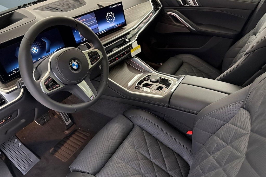 WHEELS: 22" M DUAL-SPOKE BLACK (STYLE 742M) -inc: 22" x 9.5" front and 22" x 10.5" rear, Tires: 275/35R22 Fr & 315/30R22 Rr Summer, Staggered, Space-Saver Spare, Increased Top Speed Limiter, REMOTE ENGINE START, PREMIUM PACKAGE -inc: Remote Engine Start, Live Cockpit Pro, navigation, harman/kardon Surround Sound System, PARKING ASSISTANCE PACKAGE -inc: Automatic Park Assistant, Active Park Distance Control, Backup Assistant, Parking View w/3D View (Surround View), Rear View Camera, Parking Assistant Professional, Trailer Assistant, MULTI-CONTOUR SEATS, M SPORT PROFESSIONAL PACKAGE -inc: M Sport Package Pro, Extended Shadowline Trim, M Sport Exhaust System, M Sport Brakes w/Red Calipers, M Shadowline Lights, Illuminated Kidney Grille, M SPORT BRAKES W/BLUE CALIPERS, LIVE COCKPIT PRO -inc: navigation, ILLUMINATED KIDNEY GRILLE, HEATED FRONT SEATS W/ARMRESTS & STEERING WHEEL. This BMW X6 has a strong Intercooled Turbo Gas/Electric I-6 3.0 L/183 engine powering this Automatic transmission.
