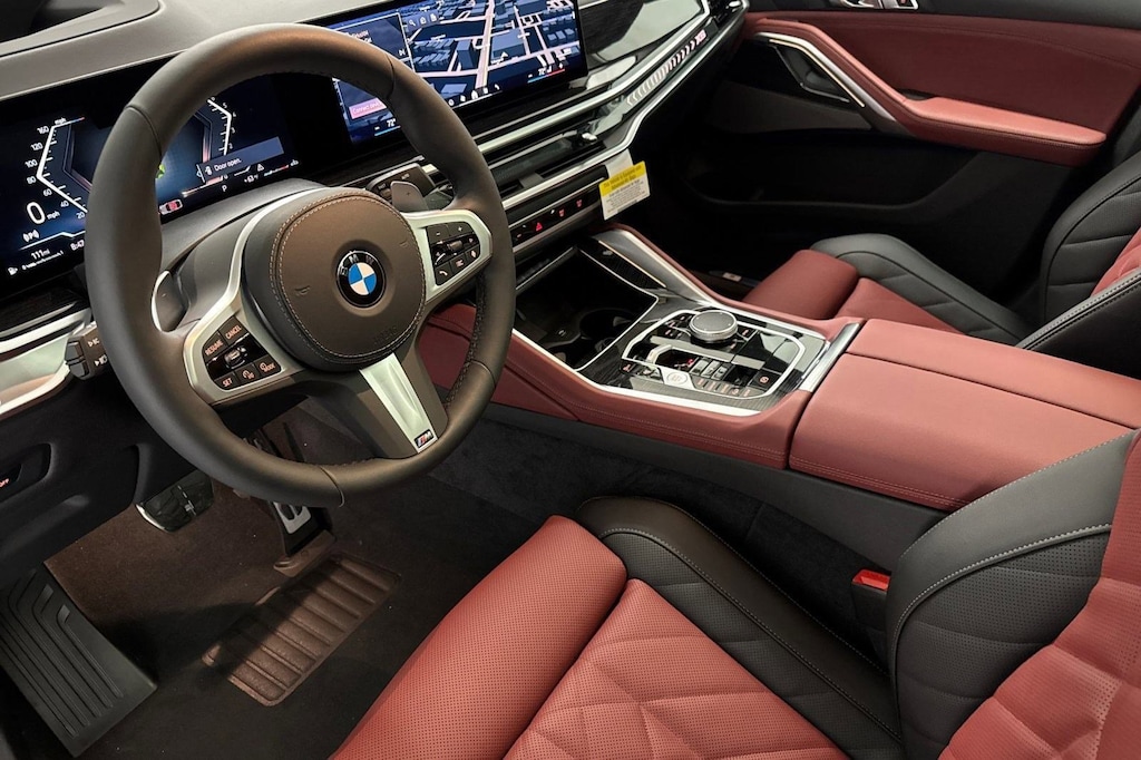 WHEELS: 22" M DUAL-SPOKE BLACK (STYLE 742M) -inc: 22" x 9.5" front and 22" x 10.5" rear, Tires: 275/35R22 Fr & 315/30R22 Rr Summer, Staggered, Space-Saver Spare, Increased Top Speed Limiter, TACORA RED, SENSAFIN UPHOLSTERY -inc: decor stitching, SPORT SEATS (STD), REMOTE ENGINE START, PREMIUM PACKAGE -inc: Remote Engine Start, Live Cockpit Pro, navigation, harman/kardon Surround Sound System, PARKING ASSISTANCE PACKAGE -inc: Automatic Park Assistant, Active Park Distance Control, Backup Assistant, Parking View w/3D View (Surround View), Rear View Camera, Parking Assistant Professional, Trailer Assistant, M SPORT PROFESSIONAL PACKAGE -inc: M Sport Package Pro, Extended Shadowline Trim, M Sport Exhaust System, M Sport Brakes w/Red Calipers, M Shadowline Lights, Illuminated Kidney Grille, LIVE COCKPIT PRO -inc: navigation, ILLUMINATED KIDNEY GRILLE, HEATED FRONT SEATS W/ARMRESTS & STEERING WHEEL. This BMW X6 has a strong Intercooled Turbo Gas/Electric I-6 3.0 L/183 engine powering this Automatic transmission.