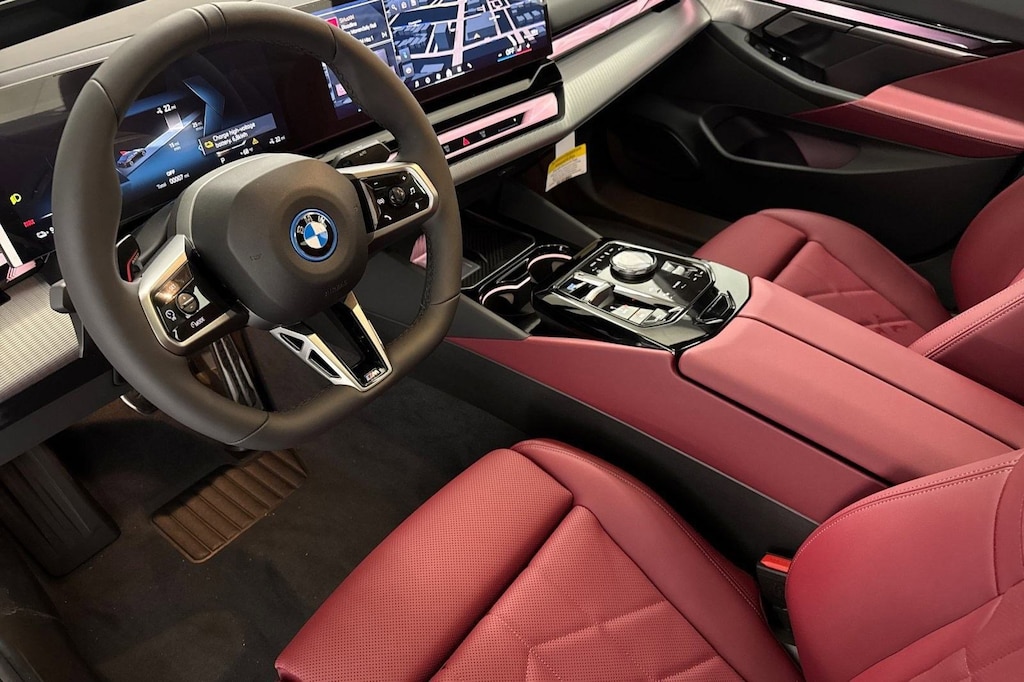 PREMIUM PACKAGE -inc: BMW Curved Display w/HUD, Heated Steering Wheel, Interior Camera, Premium Content 1, Parking Assistant Plus, M SPORT PROFESSIONAL PACKAGE -inc: M Sport Package Pro, Extended Shadowline Trim, Rear Spoiler, M Sport Pro Contents, launch control and expert mode, M Sport Brakes w/Red Calipers, M Shadowline Lights, BMW Iconic Glow Kidney Grille, M SPORT PACKAGE -inc: Shadowline Exterior Trim, M Steering Wheel, M Sport Exterior Elements, M Sport Package (337), M Sport Brakes w/Blue Calipers, M Sport Interior Elements, M Sport Suspension, Wheels: 19" x 8.5" M Aero Bicolor Grey, Style 936M, HEATED STEERING WHEEL, FRONT VENTILATED SEATS, BURGUNDY RED, PERFORATED & QUILTED VEGANZA UPHOLSTERY, BMW ICONIC GLOW KIDNEY GRILLE, BLACK SAPPHIRE METALLIC, ALUMINUM RHOMBICLE TRIM W/DARK SILVER ACCENT -inc: AG Standard Trim, Wheels: 19" x 8.5" Aero Bicolor Grey -inc: Style 934. This BMW i5 has a powerful Electric engine powering this Automatic transmission.