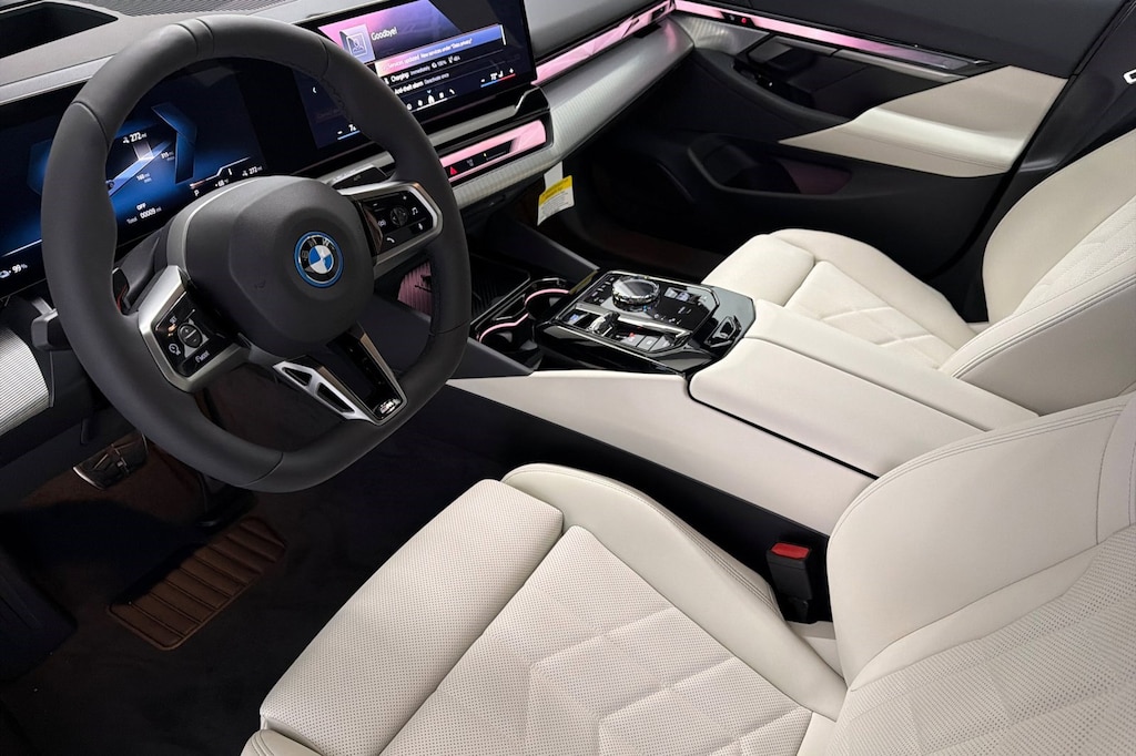 WHEELS: 19" X 8.5" M AERO BICOLOR GREY -inc: Style 936M, SMOKE WHITE, PERFORATED & QUILTED VEGANZA UPHOLSTERY, SKY LOUNGE PANORAMIC ROOF, POWER REAR SUNSHADE & REAR SIDE WINDOW SHADES, M SPORT PROFESSIONAL PACKAGE -inc: M Sport Package Pro, Extended Shadowline Trim, Rear Spoiler, M Sport Pro Contents, launch control and expert mode, M Sport Brakes w/Red Calipers, M Shadowline Lights, BMW Iconic Glow Kidney Grille, M SPORT PACKAGE -inc: Shadowline Exterior Trim, M Steering Wheel, M Sport Exterior Elements, M Sport Package (337), M Sport Brakes w/Blue Calipers, M Sport Interior Elements, M Sport Suspension, Wheels: 19" x 8.5" M Aero Bicolor Grey, Style 936M, M SPORT BRAKES W/RED CALIPERS, HEATED STEERING WHEEL, FRONT VENTILATED SEATS, EXECUTIVE PACKAGE -inc: Distance Control (ACC) w/Steering Assistant, BMW Curved Display w/HUD, Parking View w/3D View (Surround View), Glass Controls, Heated Steering Wheel, Sky Lounge Panoramic Roof, Interior Camera, Power Rear Sunshade & Rear Side Window Shades, Premium Content 1, Parking Assistant Plus. This BMW i5 has a dependable Electric engine powering this Automatic transmission.
