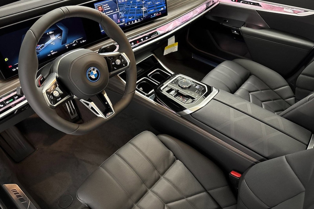WHEELS: 21" X 9" FR & 21" X 10.5" RR M AERO -inc: Style 909M, Jet black, Increased Top Speed Limiter, Tires: 255/40R21 Fr & 285/35R21 Rr Summer, Staggered, REAR-SEAT ENTERTAINMENT PROFESSIONAL, PREMIUM PACKAGE -inc: Driving Assistant Plus, Parking Assistant Professional, drive recorder, Parking View w/3D View (SurroundView), Illuminated Kidney Grille, M SPORT PROFESSIONAL PACKAGE -inc: M Sport Brakes w/Black Calipers, M Sport Package Pro, Extended Shadowline Trim, Rear Spoiler, M Sport Pro Contents, FINELINE OPEN PORE WOOD TRIM W/PIANO BLACK ACCENTS, DRIVING ASSISTANCE PROFESSIONAL PACKAGE -inc: Highway Assistant Limited Term, Active Cruise Control w/Stop & Go, Active Lane Keeping Assistant w/side collision avoidance, steering and autobahn assistant (85mph hands off), Automatic Lane Change, evasion assistant and Cross-Traffic Alert Front, Driving Assistant Professional, BLACK, EXTENDED MERINO LEATHER UPHOLSTERY, BLACK SAPPHIRE METALLIC, Wireless Device Charging, Valet Function. This BMW i7 has a strong Electric engine powering this Automatic transmission.