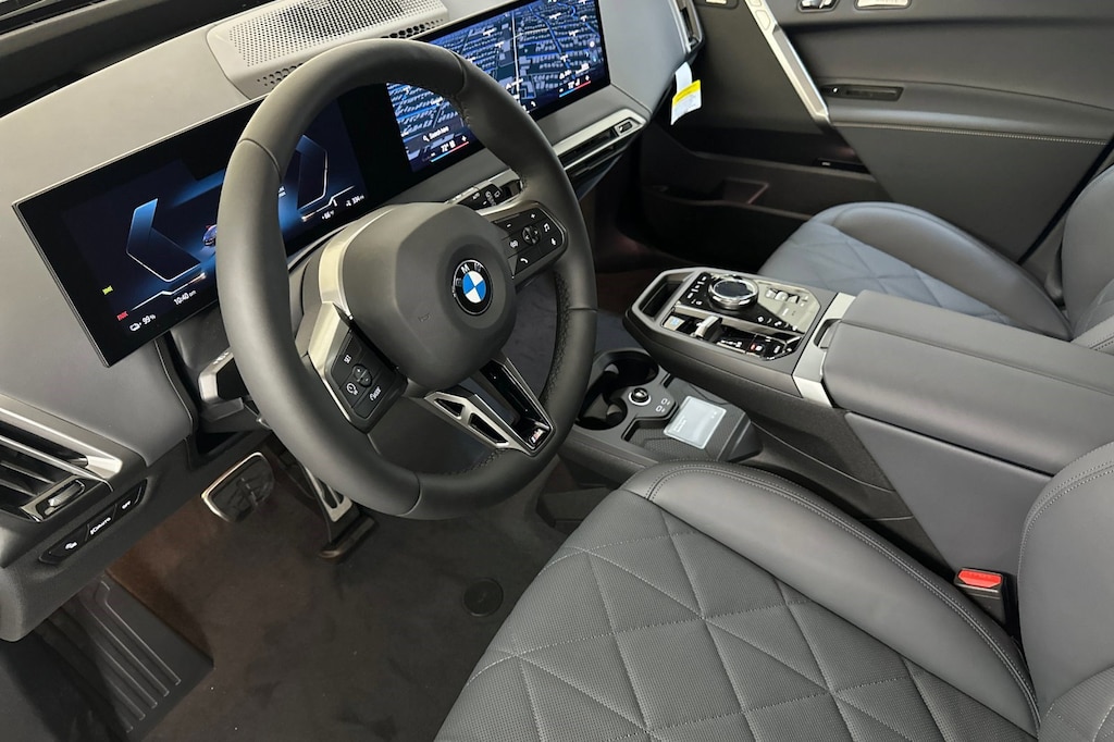 PREMIUM PACKAGE -inc: Live Cockpit Pro, HUD and video AR, Illuminated Kidney Grille, Parking Assistant Plus, M SPORT PROFESSIONAL PACKAGE -inc: M Sport Brakes w/Red Calipers, M Sport Package Pro, Full LED Lights w/Cornering Lights, M Shadowline Lights, M Sport Pro Contents, M SPORT PACKAGE -inc: 21" x 9" M Aero Bicolor Wheels (Style 1024M), 255/50R21 All-Season Tires, M Steering Wheel, M Sport Exterior Elements, M Sport Content, M Sport Package (337), M Sport Interior Elements, M Multi-Functional Seats, M Sport Brakes w/Blue Calipers, M Dark Silver Interior Trim, ILLUMINATED KIDNEY GRILLE, FRONT VENTILATED SEATS, DYNAMIC HANDLING PACKAGE -inc: Integral Active Steering, Maximizes agility and stability, At lower speeds, the rear wheels turn opposite to the front, for easier parking and cornering, At higher speeds, the rear wheels turn w/the front wheels, improving vehicle stability and lane changes, 2-Axle Air Suspension, BLACK SAPPHIRE METALLIC, AMIDO, PERFORATED LEATHER UPHOLSTERY, 22" X 9.5" M AERO BLACK WHEELS (STYLE 1027M) -inc: 275/40R22 All-Season Tires, Wireless Device Charging. This BMW iX has a powerful Electric engine powering this Automatic transmission.