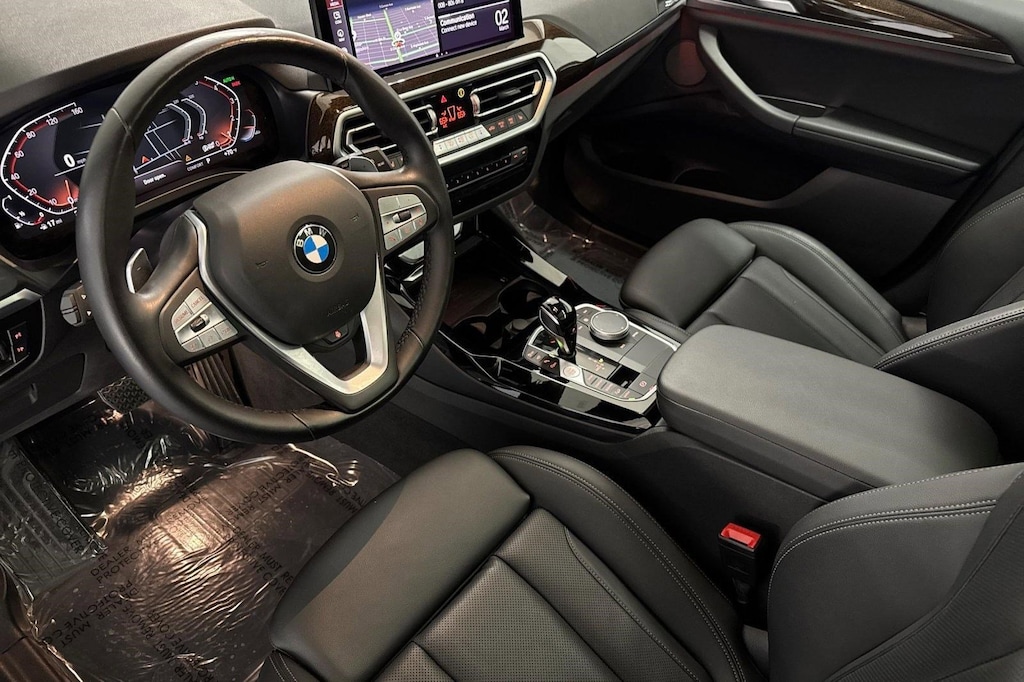 This 2023 BMW X3 xDrive30i is a One Owner vehicle with a Clean Carfax, exterior, and interior. Key features include PANORAMIC MOONROOF, BLACK PERFORATED SENSATEC UPHOLSTERY, PREMIUM PACKAGE, WIRELESS CHARGING, HEATED STEERING WHEEL, DRIVE RECORDER, HEATED FRONT SEATS, PARKING ASSISTANCE PACKAGE, HARMAN/KARDON SURROUND SOUND SYSTEM, and much more!