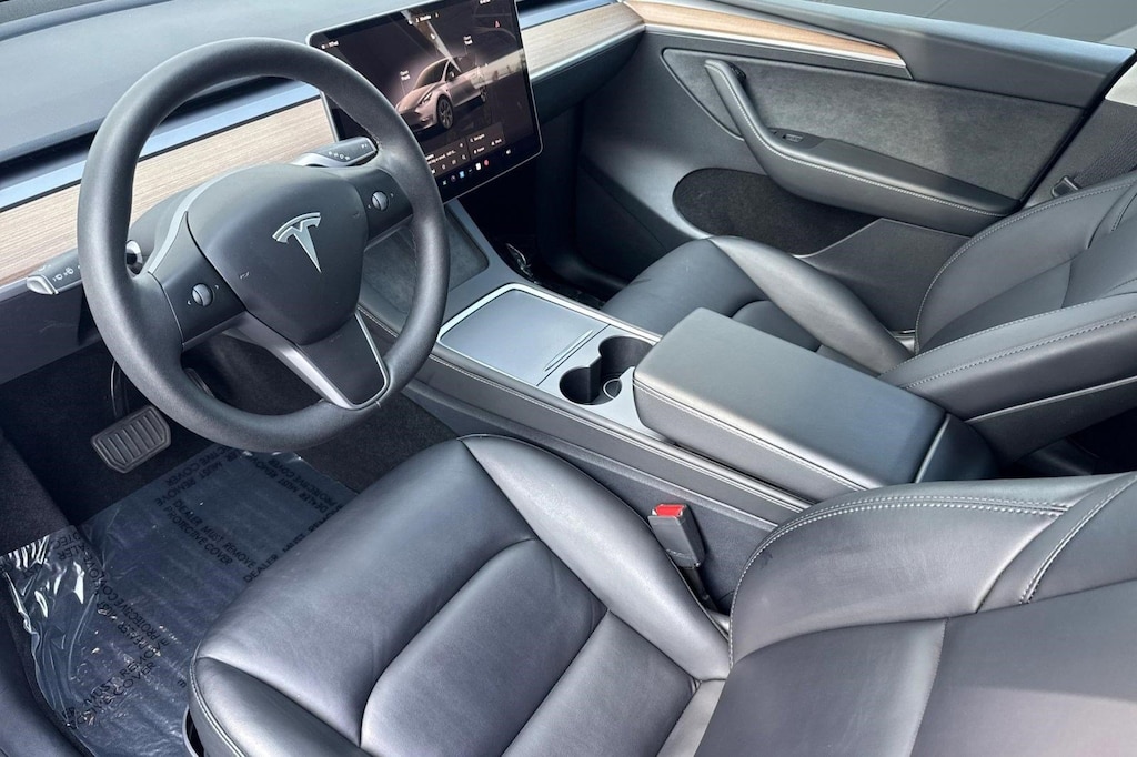 ONE OWNER, CLEAN CARFAX, 2024 Tesla Model Y Long Range, Electric Motor, Panoramic Roof, Heated Mirrors, Headlights-Auto-Leveling, Bluetooth Connection, Heated Front and Rear Seat(s), Woodgrain Interior Trim, Navigation System, Rear Parking Aid, Back-Up Camera, Blind Spot Monitor, Cross-Traffic Alert, Lane Departure Warning, Lane Keeping Assist, Gray exterior, and Black interior.