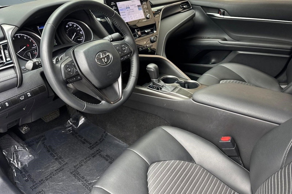Wireless Phone Connectivity, Wheels: 8.0J x 18" Black Machined-Finish Alloy, Urethane Gear Shifter Material, Trunk Rear Cargo Access, Trip Computer, Transmission: 8-Speed Direct Shift ECT-i Automatic -inc: sequential shift mode and paddle shifters, Transmission w/Driver Selectable Mode, Tires: 235/45R18 AS, Tire Pressure Monitor System (TPMS) Tire Specific Low Tire Pressure Warning, Strut Front Suspension w/Coil Springs. This Toyota Camry has a dependable Regular Unleaded I-4 2.5 L/152 engine powering this Automatic transmission.